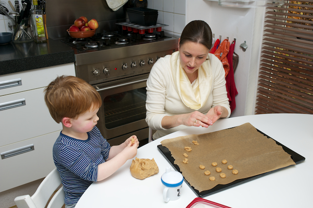 Maak (samen met je peuter) allemaal kleine balletjes en leg ze op de bakplaat.